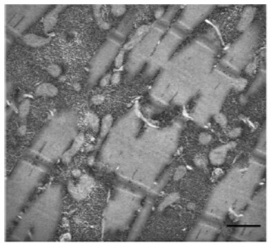 Microscopic examination of muscle biopsies reveals cellular swelling and glycogen granules in muscle cells as well as excess glycogen in capillary walls of muscles and the skin.6 In the example below, you can see glycogen accumulation disrupting the myofibrils in skeletal muscle of a late-onset Pompe patient.