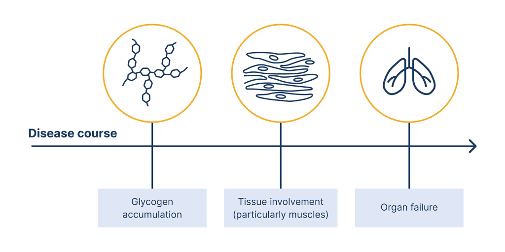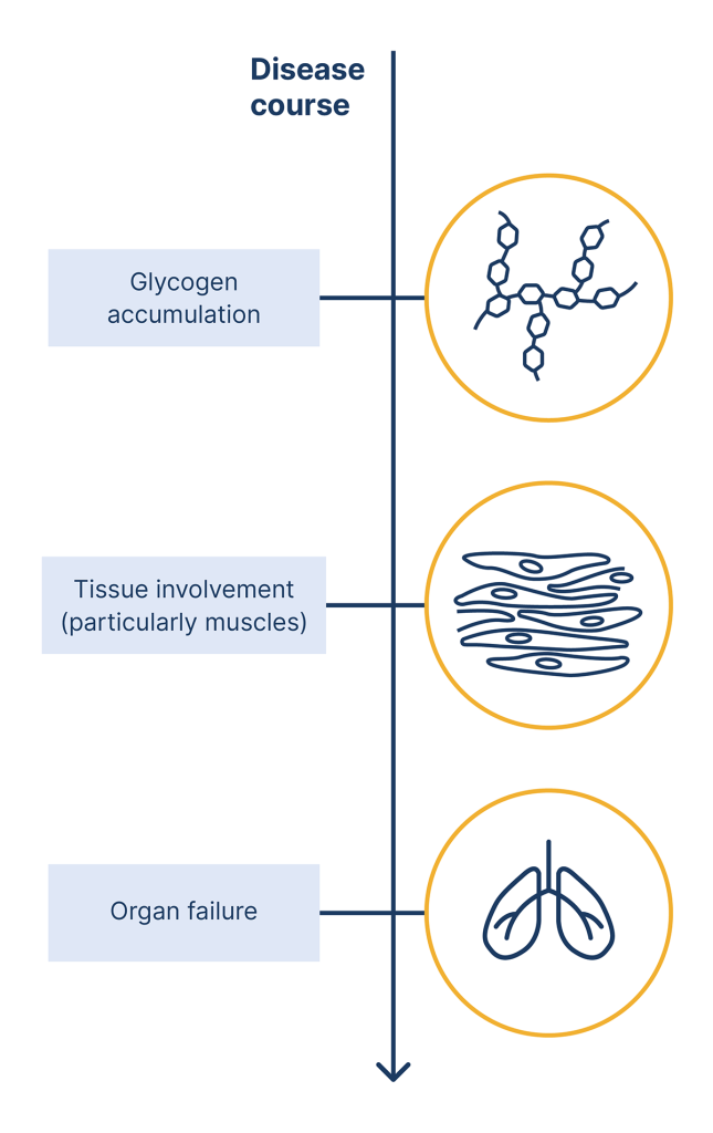 This leads to cell damage within affected tissues, and causes the various pathologies seen in Pompe disease